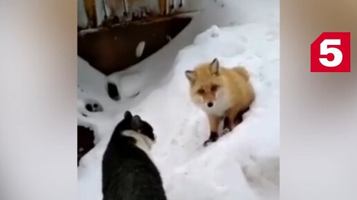 На Ямале кот и лиса сошлись в поединке за кусок колбасы, попав на видео.