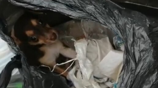 Мужчина спас щенка, выброшенного в мусорный бак - видео