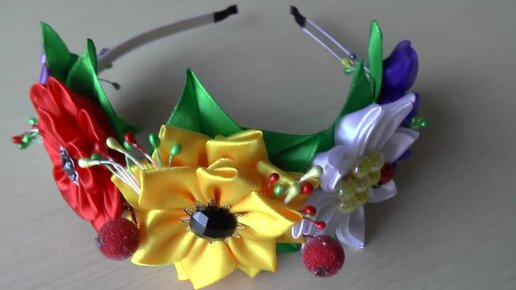 Красивый обруч из атласных лент