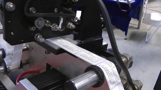 Наклейка самоклеящихся этикеток на стеклянные ампулы с лекарствами в фармацевтическом производстве www.Minipress.ru