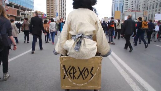 Царь едет на Ксероксе запряженным Лисой. Монстрация Новосибирске