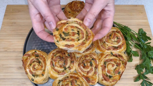 Слоеные булочки завитушки с сосисками. Рецепт за 1 час с выпечкой
