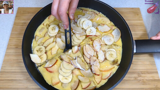 Жарю яблоки, груши и бананы и заливаю яйцами с молоком. Сладкий омлет с фруктами на завтрак