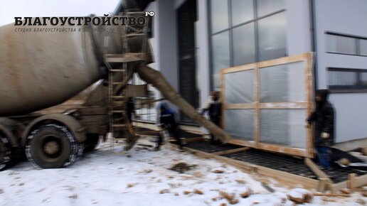 Бетонирование отмостки зимой.