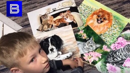 Мальчик рисует картины, чтоб помочь бездомным животным