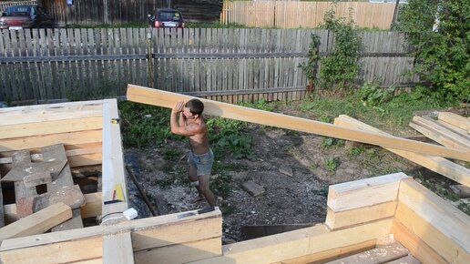 Затаскиваем брус на дом в одного
