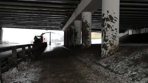 Как чистят дороги в Москве-сваливают грязь на тротуар и столбы моста