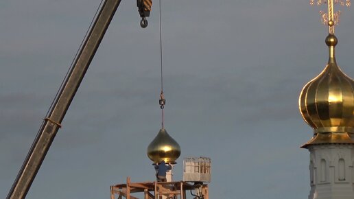 Установка купола и креста на звоннице церкви Рождества Пресвятой Богородицы в Арзамасе