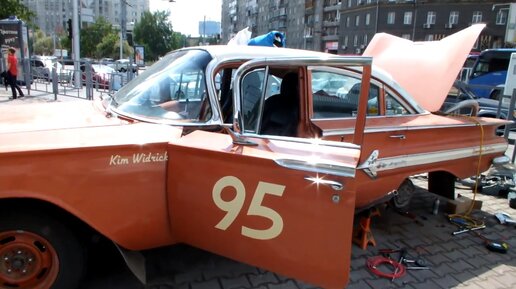 Шевроле Импала 1959 года немного сломалась в Новосибирске. Замена подшипника полуоси на коленке