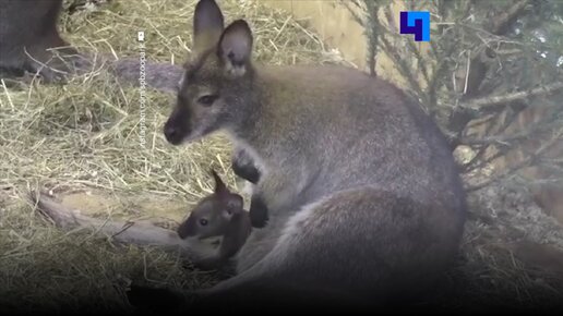 Кенгуренок из Ленинградского зоопарка начал вылезать из маминой сумки