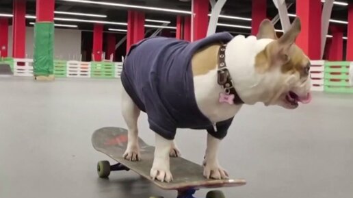 Этот французский бульдог стал профессиональным скейтбордистом
