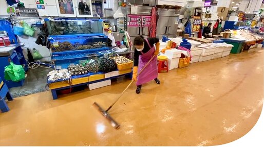 Как происходит уборка на рынке в Корее
