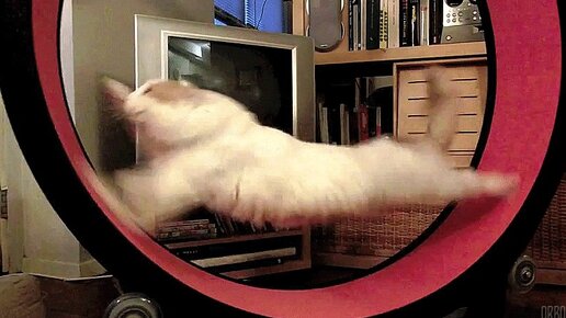Кот бежит в колесе