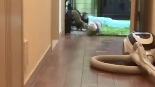 Хорёк скользит по полу