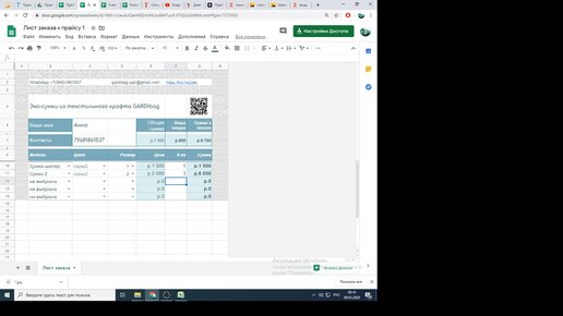 Шаблоны в Google-таблицах: Прайс и Лист заказа - общие данные, совместная работа