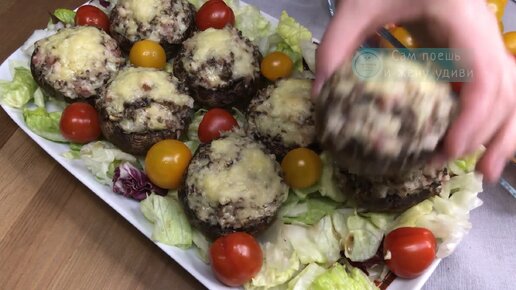 Эту простую закуску из шампиньонов любит вся семья. Запеченные фаршированные шампиньоны.