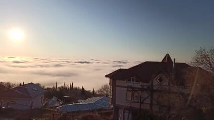 Туман. Дом на облаке. Зацвёл горный кактус.