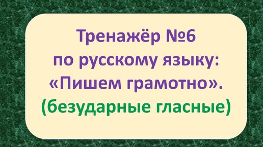 ТРЕНАЖЁР №6 ПО РУССКОМУ ЯЗЫКУ (БЕЗУДАРНЫЕ ГЛАСНЫЕ). /1 - 2 КЛАСС/ 5+
