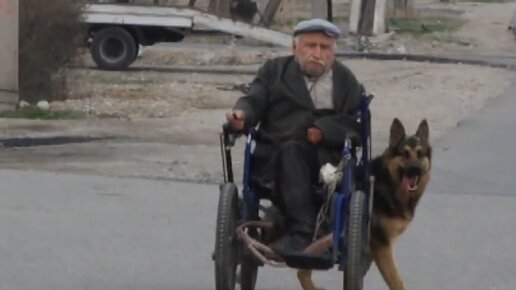 Настоящий друг, товарищ и помощник. Этот песик всюду помогает своему хозяину