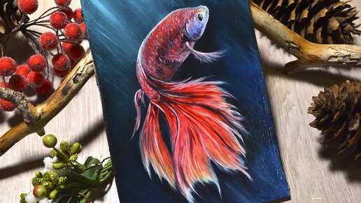 Масляная живопись. Картина маслом «Золотая рыбка» разными техниками в миниатюре