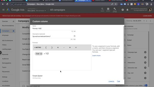 Пользовательские столбцы в @Google Реклама (🇷🇺интерфейс!)
