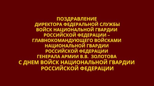 Поздравление директора Росгвардии генерала армии Виктора Золотова с Днем войск национальной гвардии Российской Федерации