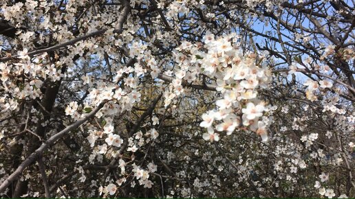 Весна в Крыму. Деревья в белых цветах. Алыча