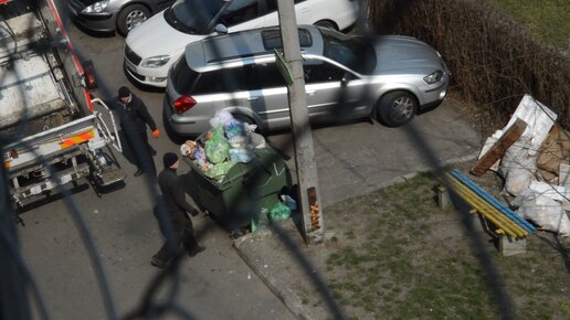 Как убирают переполненный контейнер мусора когда заварили мусоропровод