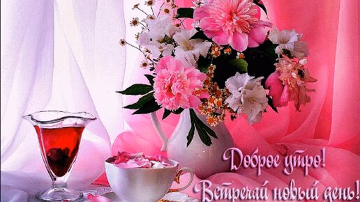 Утренняя чашечка ароматного кофе и цветы для любимой.