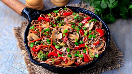 Гречневая лапша с овощами и грибами в соевом соусе — видео рецепт постного блюда!