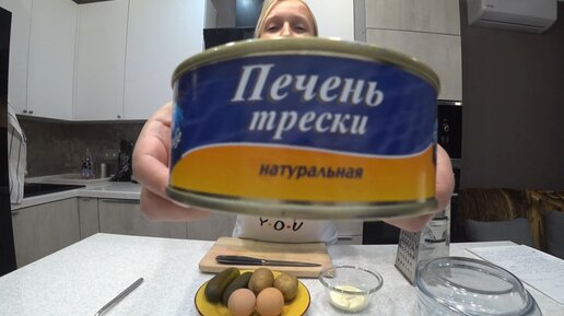 Салат из печени трески с солёным огурцом / нежный, вкусный и полезный