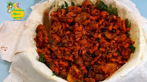 Праздничный ПЛОВ на любителя с СУХОФРУКТАМИ в ЛАВАШЕ .