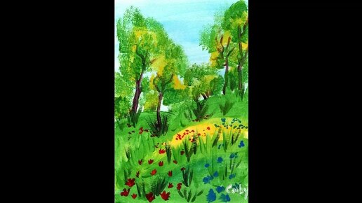 Как за 10 минут нарисовать с ребенком солнечный пейзаж.