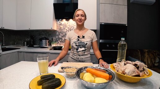 РАССОЛЬНИК с перловкой и солеными огурцами