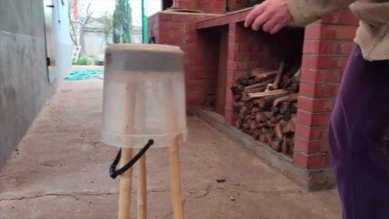 Надоели поделки из бутылок и коробок. Сделала из цемента, старого ведра и палок