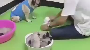 Забавное видео 🙂 : Хозяин играет с мопсом в наперстки 🗑 на его щенков. Кому достанутся милые щеночки? 😉