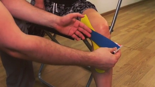 Тейпирование коленного сустава для поддержания боковой связки.