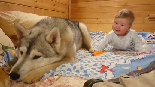 Большой няня Хаски для младенца, Артур и его верный друг Зохан.