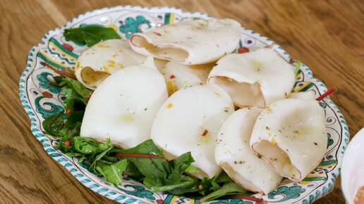 Салат с запеченными кальмарами