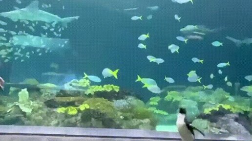 Пингвины в океанариуме