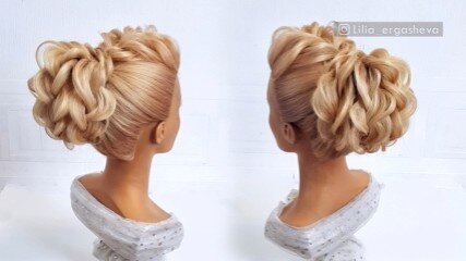Креативная и модная прическа с плетением волос. Пучок из кос. Прическа на каждый день