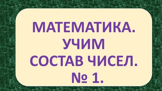 МАТЕМАТИКА. УЧИМ СОСТАВ ЧИСЕЛ. №1. /1 КЛАСС/ 5+