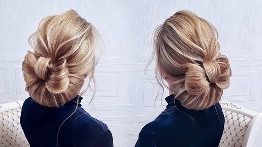 Свадебная и вечерняя прическа. Низкий пучок. Коктейльная прическа