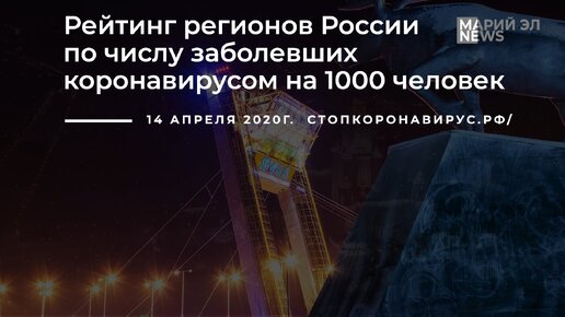 14 апреля 2020: Рейтинг регионов России по числу заболевших коронавирусом на 1000 человек