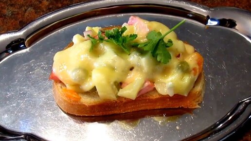 Рецепт горячего бутерброда из оливье. Самогон Саныч предлагает.