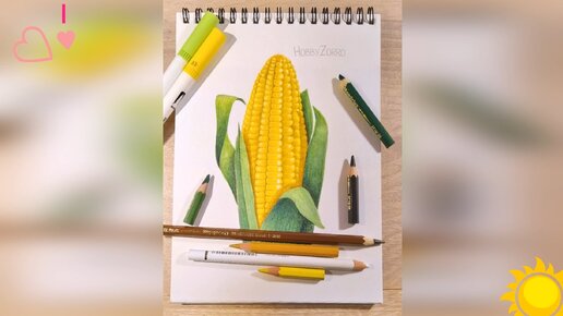 Пошаговое рисование кукурузы фломастерами и цветными карандашами
