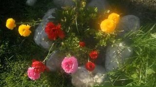 Цветы около дома в деревне