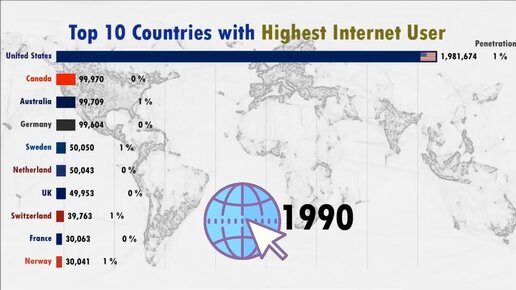 ТОП-10 Стран по количеству интернет пользователей 1990-2019