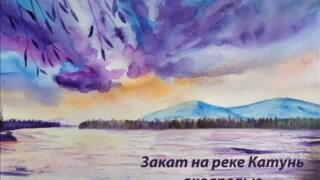 Закат на реке Катунь (акварель)