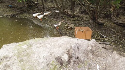 Выпустили гусят в пруд! Гусыня начала щипать гусят!